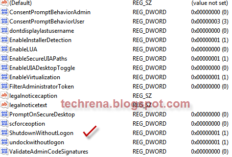 Step 3: In the right side find the key ShutdownWithoutLogon. Double click on it and change the value to 1.